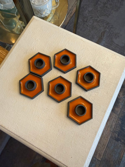 Cast Iron and Enamel Hexagon Taper Candle Holders