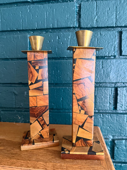 Pair of Olive Wood Shabbat Candlesticks